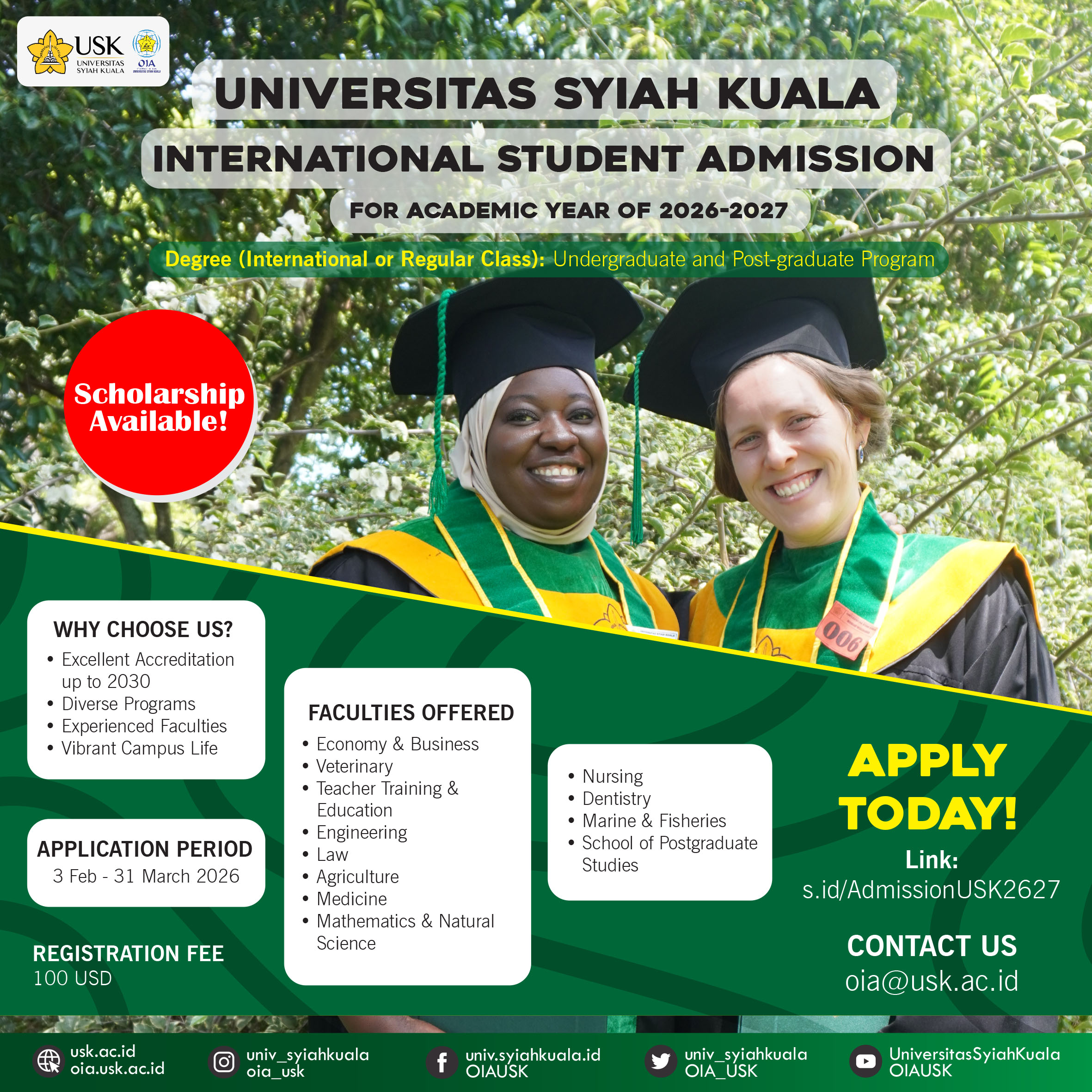 Dreaming of studying in Indonesia? Universitas Syiah Kuala welcomes international students for the 2026–2027 Academic Year! Undergraduate & Postgraduate Programs Multicultural campus …